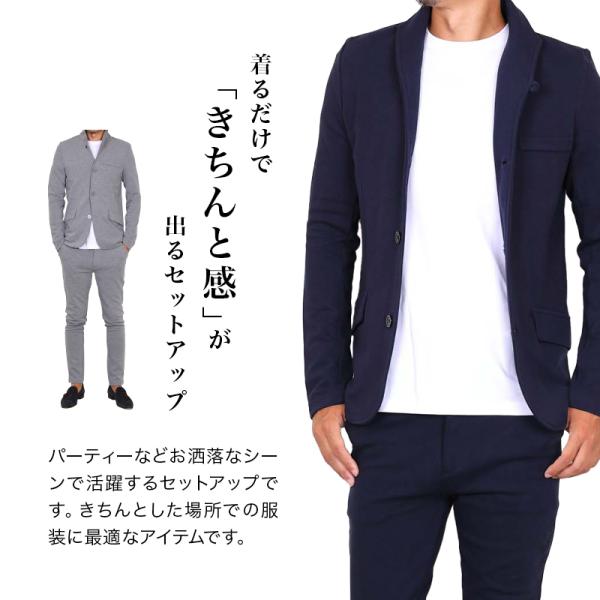 セットアップ メンズ スーツ ソフト ストレッチ イタリーカラー カルゼ テーラードジャケット テーパードパンツ 上下2点セット