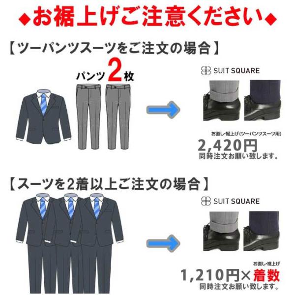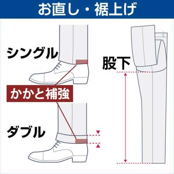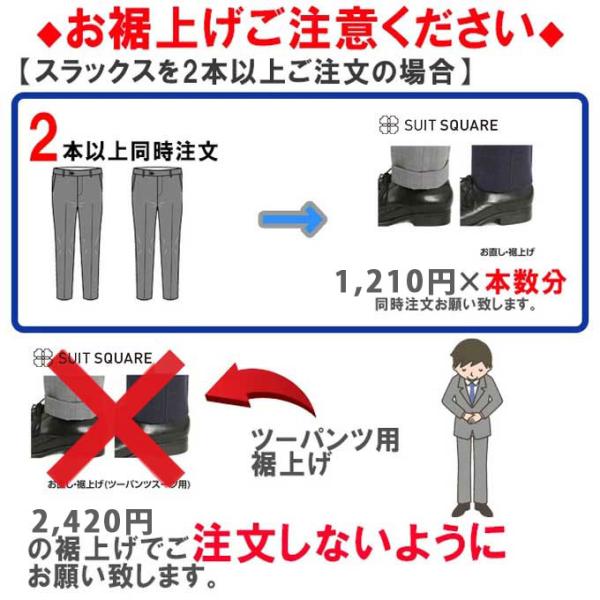 【スーツスクエア】裾上げ(パンツ1本分)◆パンツ2枚の場合はカートに2点◆注意:ツーパンツスーツご注文の際、ツーパンツ用裾上げをご注文下さい◆