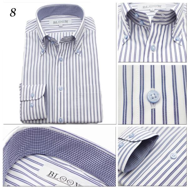 ワイシャツ 長袖 メンズ ビジネス 形態安定 ボタンダウン ストライプ Yシャツ 白 ホワイト Mサイズ