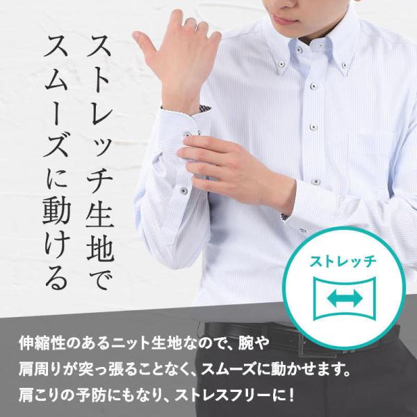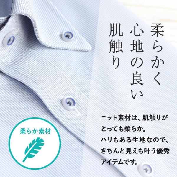 ワイシャツ メンズ 長袖 ストレッチ ニットシャツ 形態安定 ノーアイロン Yシャツ 白 ブルー