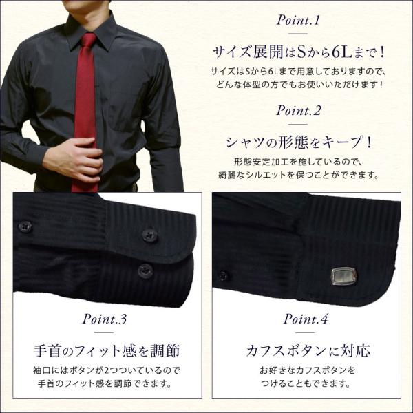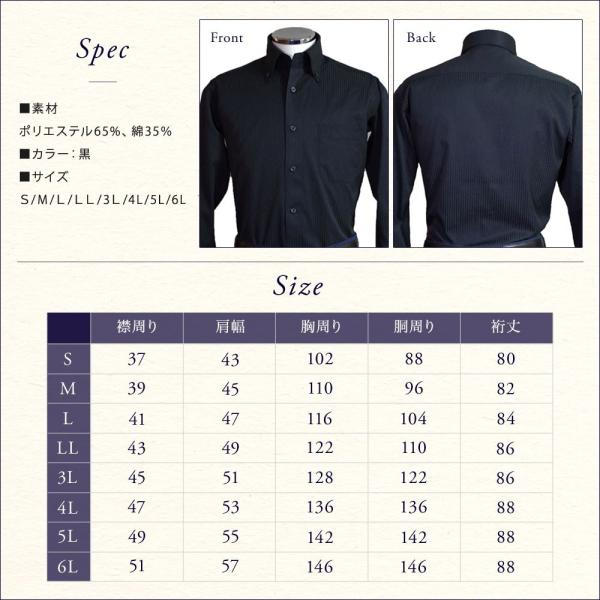 ワイシャツ 長袖 メンズ ビジネス 大きいサイズ S M L LL 3L 4L 5L 6L ボタンダウン ブラック 黒 形態安定 レギュラーカラー