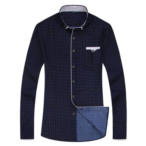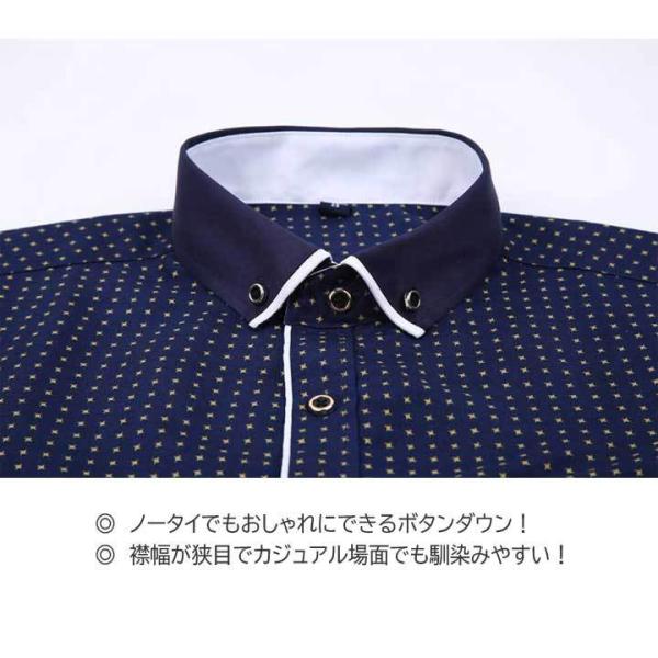 ドレスシャツ メンズ カジュアル ワイシャツ ボタンダウン 長袖 胸ポケット ゴールドリング飾りボタン 滑らかでソフトな生地 ややスリムフィット 6種類