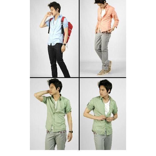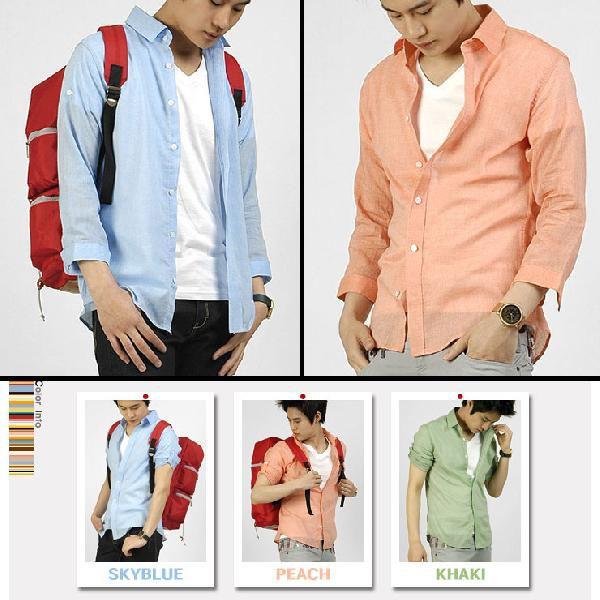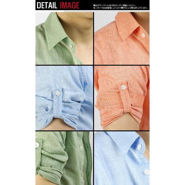 七分袖 ロールアップ 綿・麻混紡 シャツ 3色 hd101