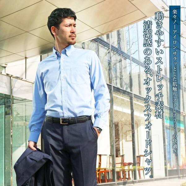 オックスフォードシャツ ワイシャツ 長袖 ノーアイロン ストレッチ ビジネス メンズ ボタンダウン 吸水速乾 テレワーク リモートワーク メール便送料無料
