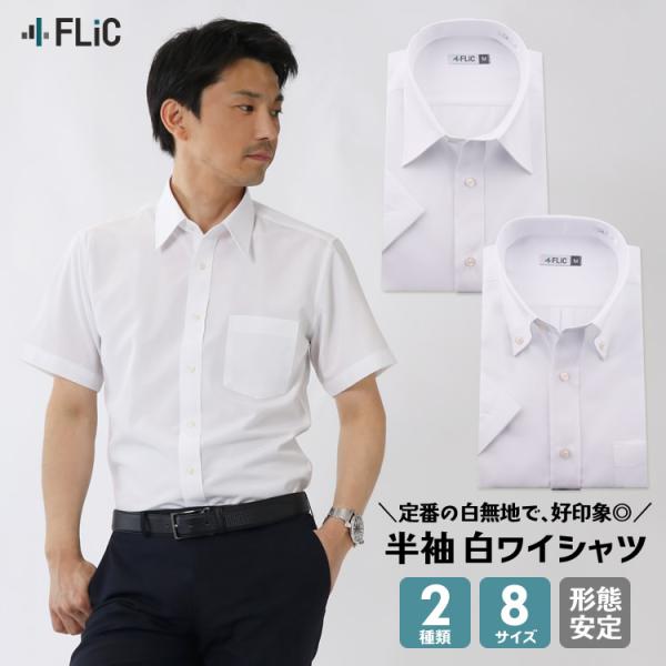 ワイシャツ メンズ 半袖 白 無地 カッターシャツ 形態安定 スリム ゆったり 制服 Yシャツ