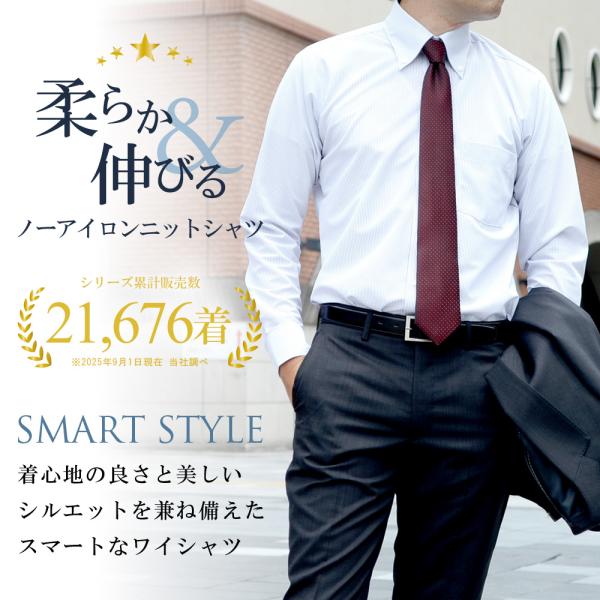 ワイシャツ 長袖 ノーアイロン ニットシャツ メンズ ストレッチ 大きいサイズ 4L 5L スリム 形態安定 吸水速乾 ボタンダウン セミワイドカラー ビジネス Yシャツ
