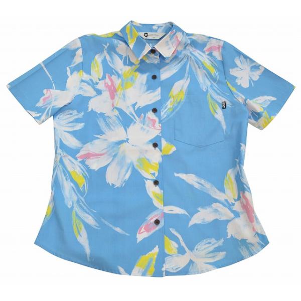 かりゆしウェア レディース ロイヤルハイビ ブルー かりゆしウェア 沖縄 アロハシャツ かりゆし 半そで 半袖 シャツ リゾート 夏 ビーチ 結婚式