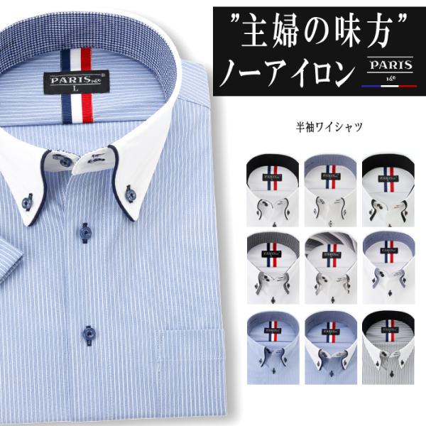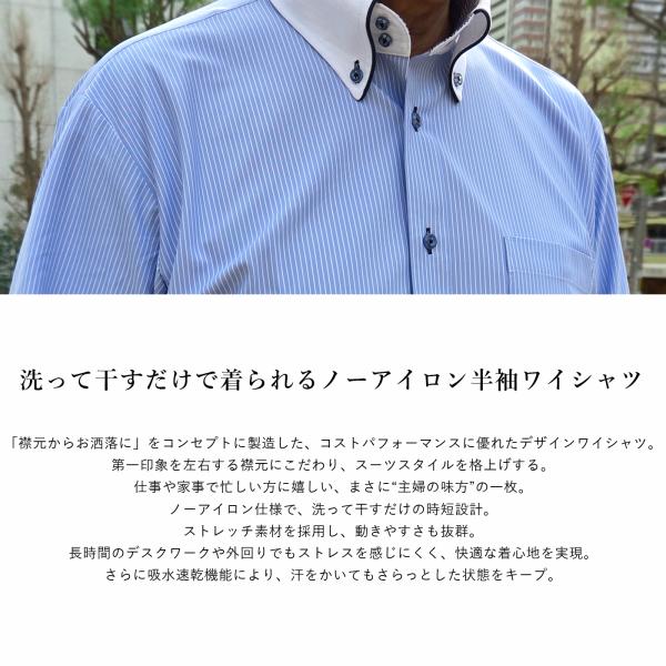半袖 ワイシャツ ノーアイロン ニット メンズ Yシャツ カッターシャツ M L LL 3L 大きいサイズ ボタンダウン 白 青 ストライプ ビジネス おしゃれ ブランド