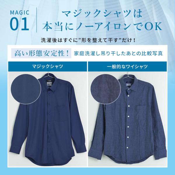 即日出荷 ワイシャツ スリム メンズ ノーアイロン ニットシャツ 長袖 形態安定 ストレッチ 吸水速乾 日本製生地 ドレスシャツ Yシャツ 細身 MAGIC SHIRTS