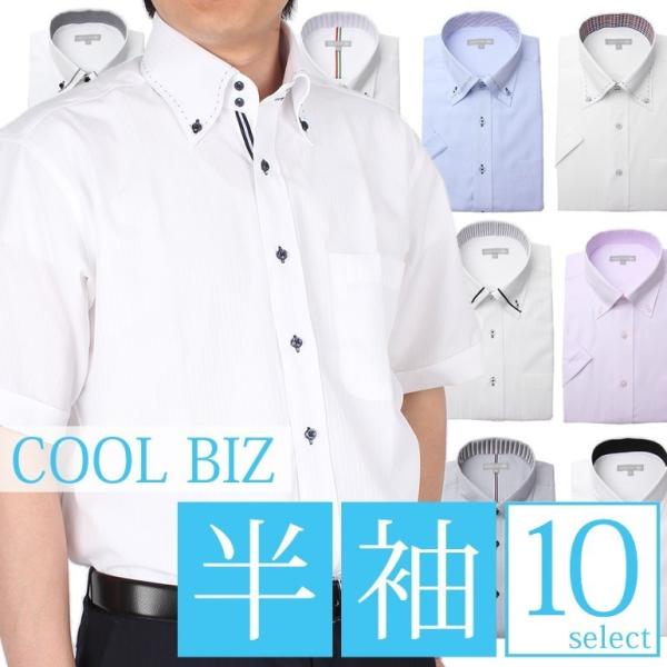 半袖ワイシャツ 選べる10柄 ボタンダウン ドゥエボットーニ クールビズ メンズ 紳士用 ビジネス 形態安定 トップ芯加工 ノーアイロン 白 ホワイト ブルー ピンク