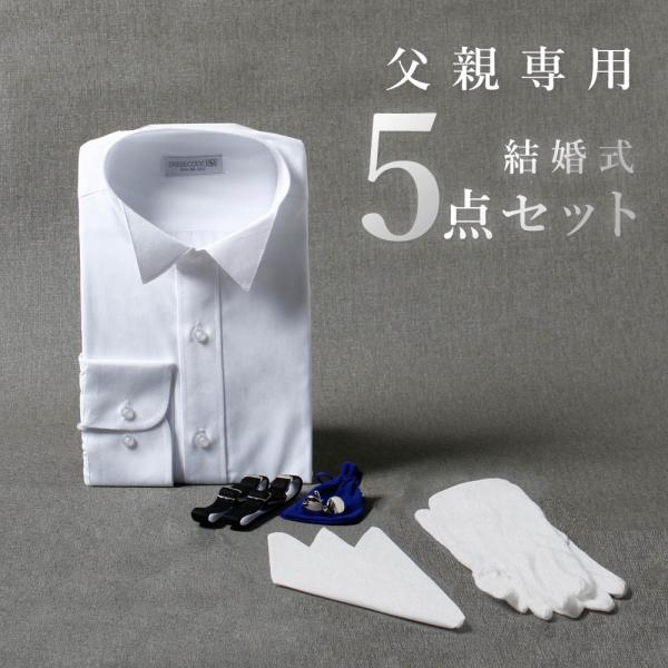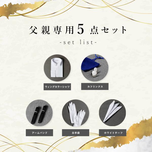 【父親モーニング小物セット】5点セット 結婚式 フォーマル 新郎父 新婦父 衣装 ウイングカラーシャツ カフス チーフ アームバンド 手袋 ウェディング 礼装 親族