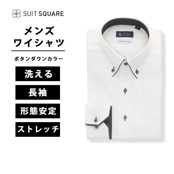 ワイシャツ 長袖 形態安定 ストレッチ ボタンダウンカラー 織柄 BASIC ドレスシャツ ホワイト