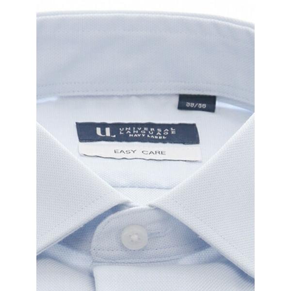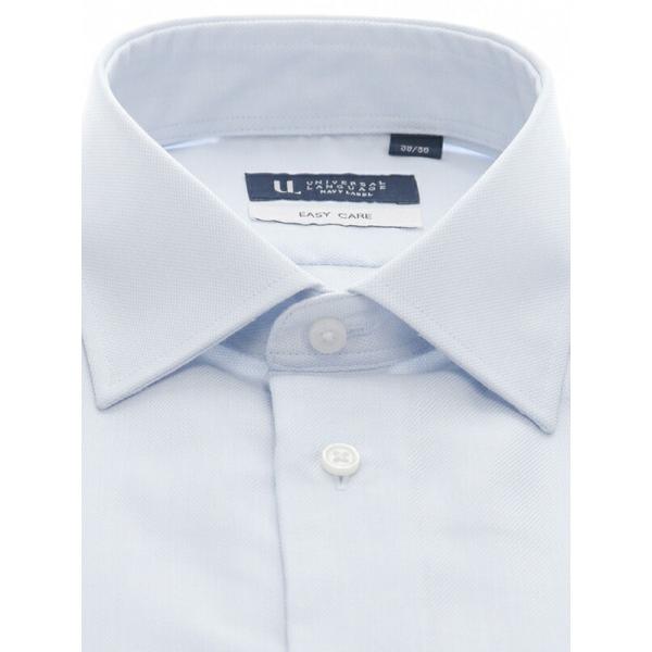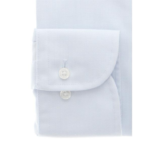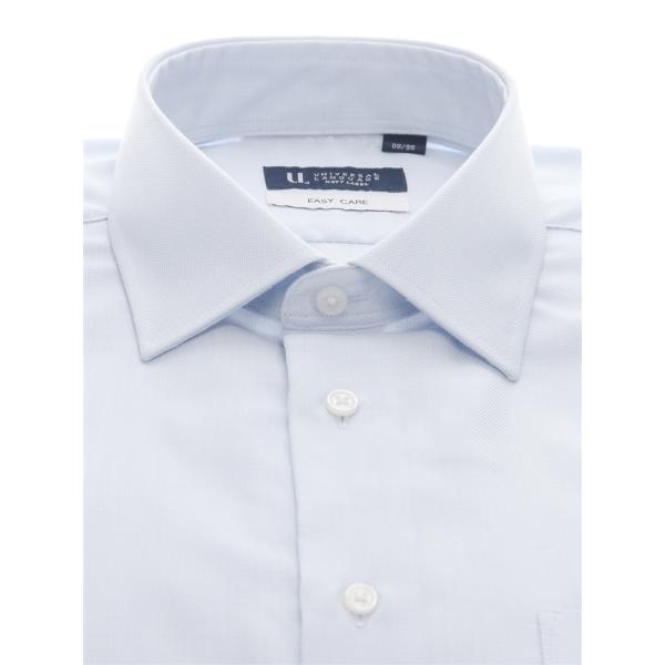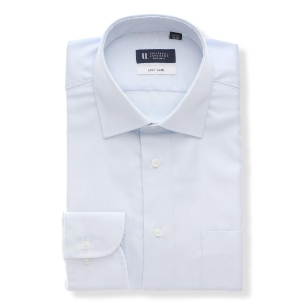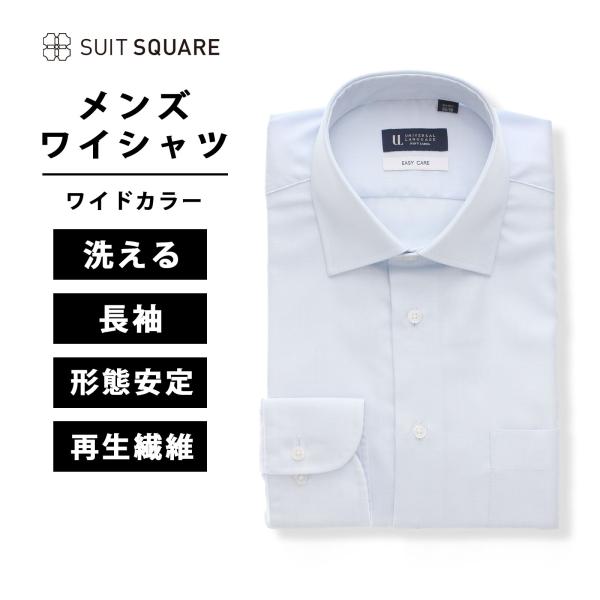【スーツスクエア】メンズ ワイシャツ Yシャツ 長袖 形態安定 再生繊維 ワイドカラー 織柄 BASIC ドレスシャツ サックスブルー イージーケア ビジネス ビジカジ