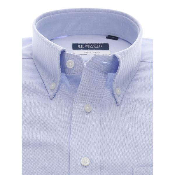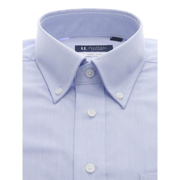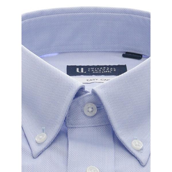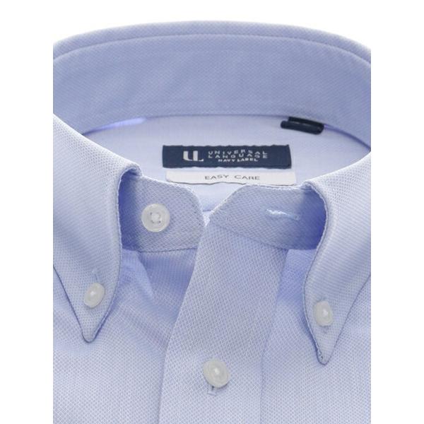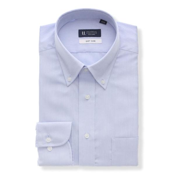 【スーツスクエア】メンズ ワイシャツ 長袖 形態安定 再生繊維 洗えるブルー 青 ボタンダウン 織柄 BASIC 標準体 ドレスシャツ ブルー スーツスクエア 硬くない