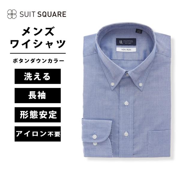 【スーツスクエア】メンズ ワイシャツ 長袖 ノンアイロン 形態安定 ボタンダウンカラー 無地 BASIC ドレスシャツ ブルー系