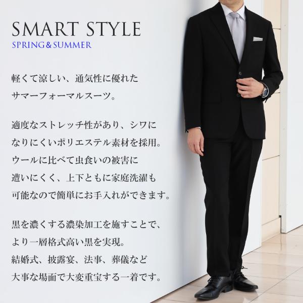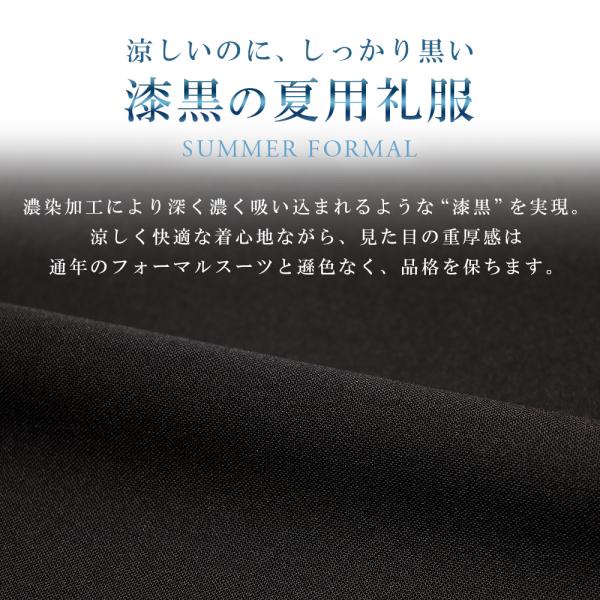 サマーフォーマル スーツ メンズ 礼服 濃染加工 夏用 喪服 葬式 結婚式 アジャスター 洗える ストレッチ 涼しい スリム 2つボタン 漆黒 冠婚葬祭