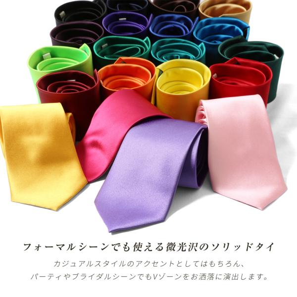ネクタイ 無地 8cm カラーネクタイ カラバリ 赤 黄色 青 緑 黒 シルバー オレンジ ピンク コスプレ サテン