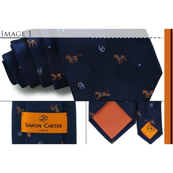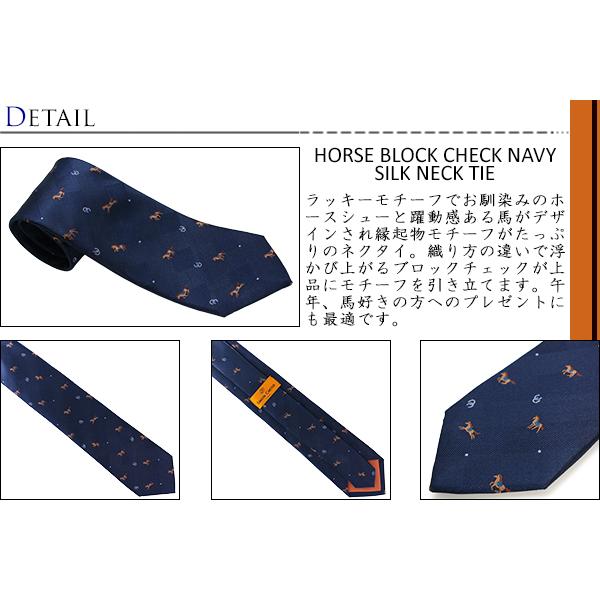 ネクタイ ブランド SIMON CARTER サイモン・カーター 馬 ブロックチェック シルク ネクタイ(ネイビー)レギュラータイ 午 ホースシュー 父の日 爆買