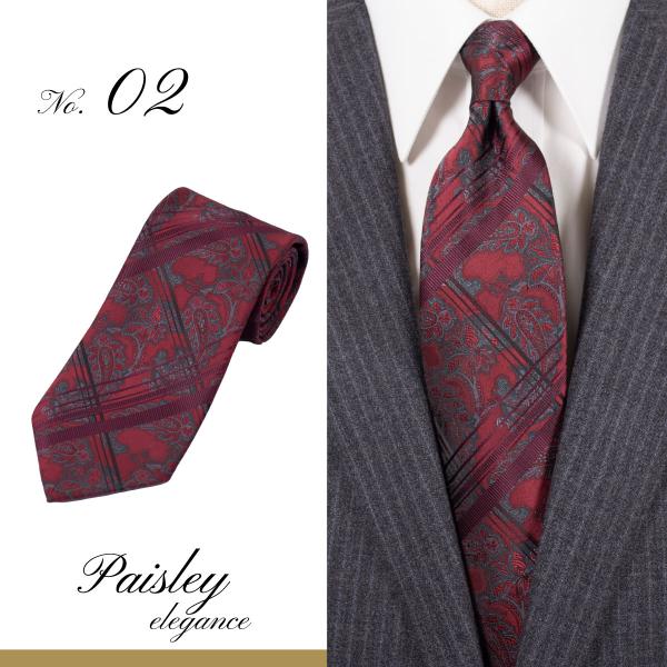 ネクタイ ペイズリー ペーズリー 送料無料 レギュラー おしゃれ 人気 ネイビー ブルー サックス ワイン レッド グレー シルバー ブラウン グリーン パープル