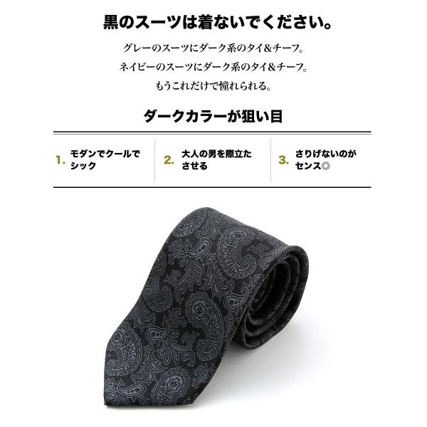 ネクタイ 日本製 ブラック シルク100% シルバー フォーマル パーティー ストライプ ドット ペイズリー ※チーフは別売り