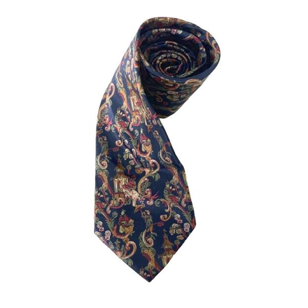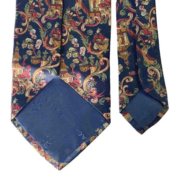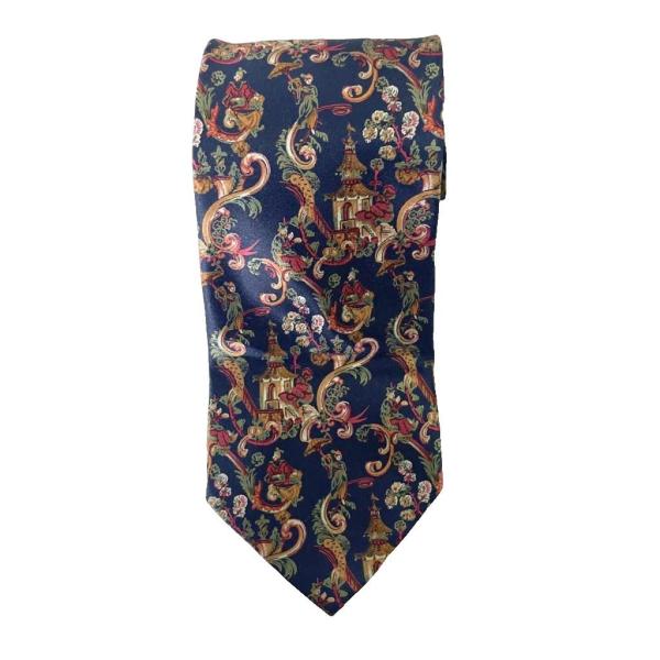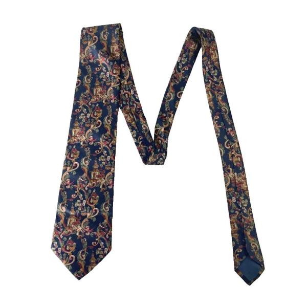 バレンシアガ BALENCIAGA ネクタイ 総柄 シルク オールド ヴィンテージ ワイドタイ ネイビー ■GY99 メンズ
