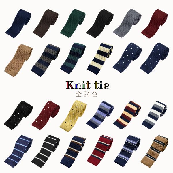 ニットタイ 無地 ドット ボーダー ネクタイ 【24種類】 ビジネス カジュアル おしゃれ ギフト プレゼント 送料無料 knit
