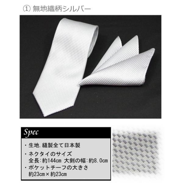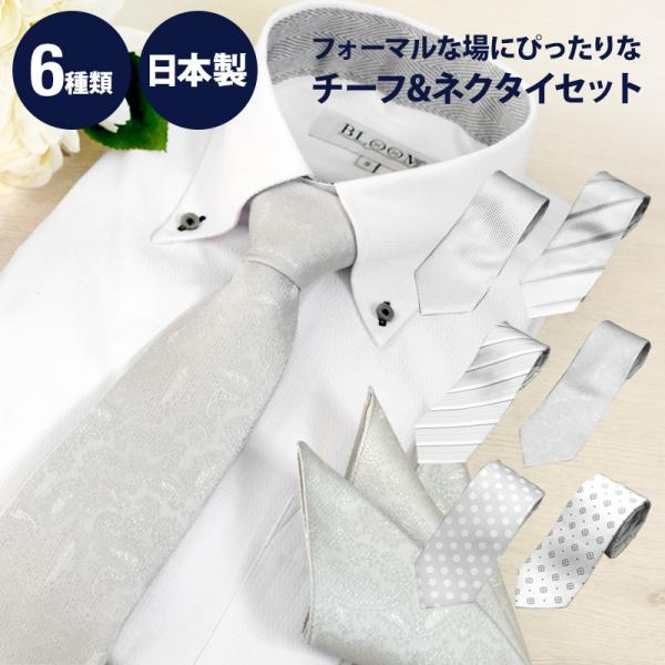 ネクタイ 日本製 丹後ちりめん ネクタイ&チーフセット シルバー ネクタイ 結婚式 披露宴 ギフト