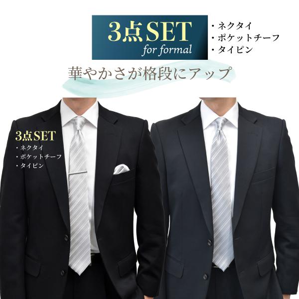 ネクタイ 結婚式 白 シルバー グレー ポケット チーフ ネクタイピン セット メンズ フォーマル ウエディング 挙式 披露宴 冠婚葬祭 無地 二次会 パーティー