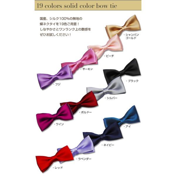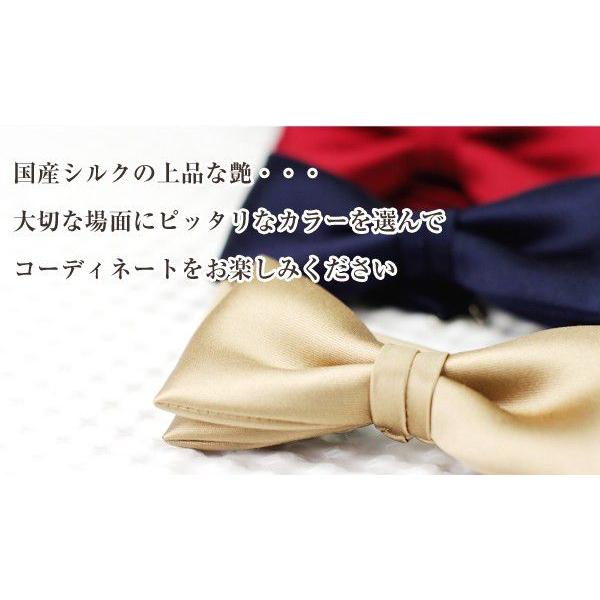 蝶ネクタイ チーフとお揃いで 朱子素材でワンランク上の艶感 ソリッド蝶ネクタイ(国産 シルク)