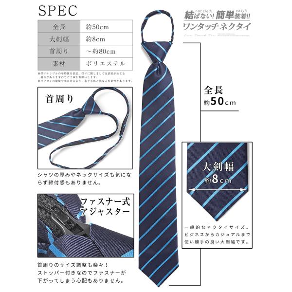 ワンタッチネクタイ ネクタイ ワンタッチ メンズ ディンプル ジッパー式 クイック ワンタッチタイ くぼみ ストライプ柄 簡単 おしゃれ ネイビー 8cm