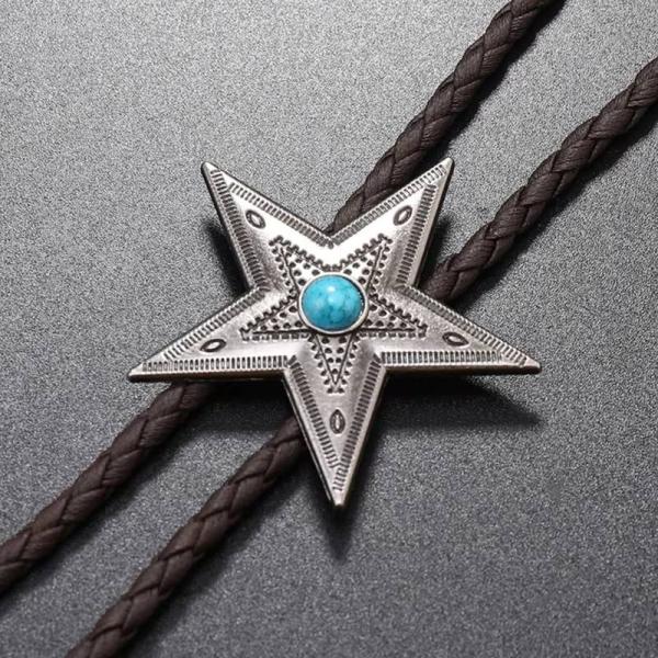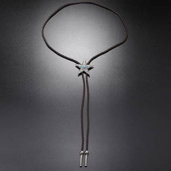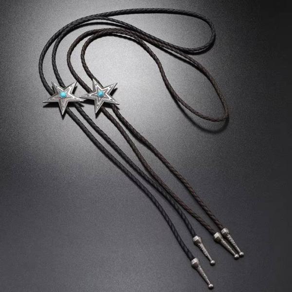ループタイ ボロタイ スター 星 亜鉛合金 ウェスタン ペンダント ナイロン ロープ メンズアクセサリー 紳士用 ジュエリー 合成皮革 レザーロープ