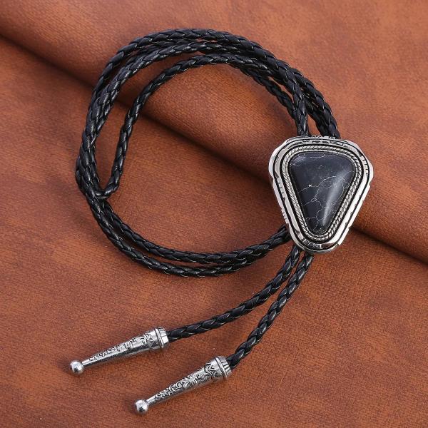 ループタイ ネイティブ風ループタイ メンズ アクセサリー 全3色 ウエスタン調 ボロタイ クラック模様 ナチュラル ストーン ペンダント ジュエリー