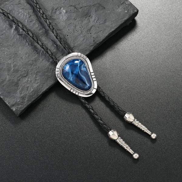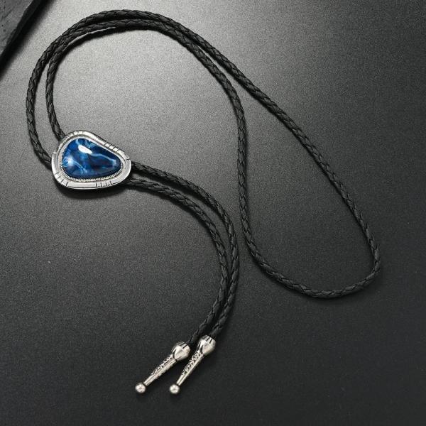 ループタイ ドロップ型ガラスストーン ループタイ メンズ アクセサリー 全2色 ウエスタン調 ボロタイ マーブル・ストーン調模様 ペンダント