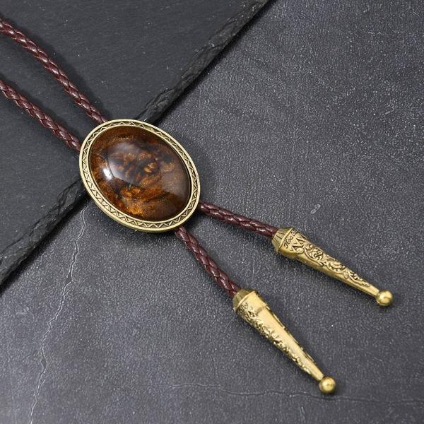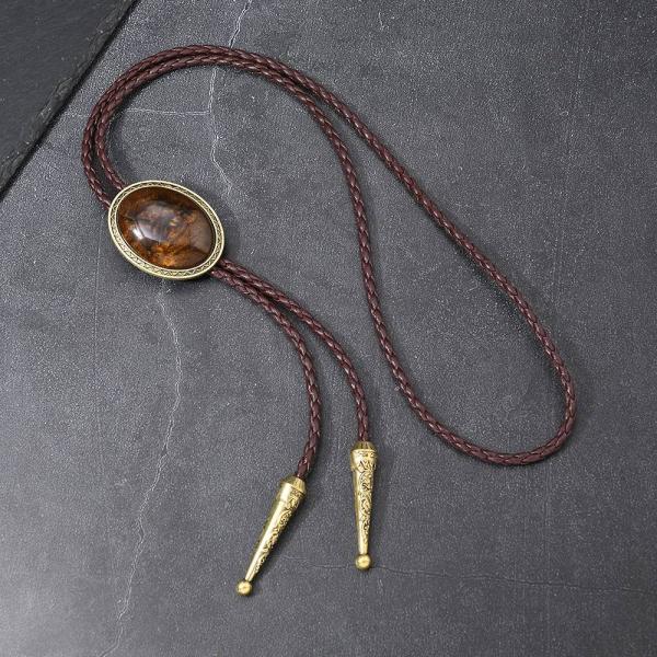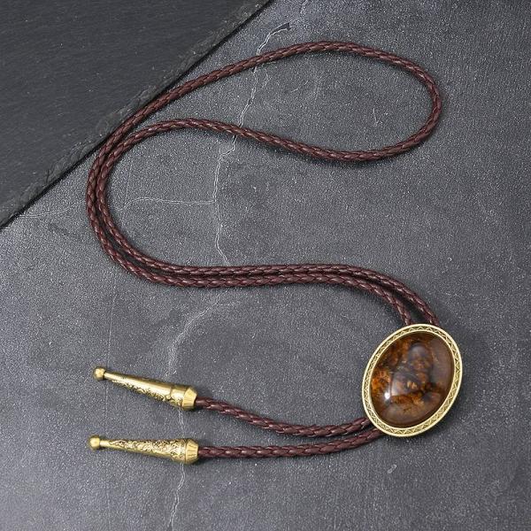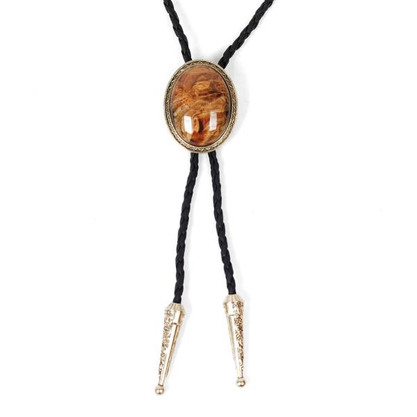 ループタイ ボロタイ ナチュラル ストーン ネクタイ代わり ブラウン、ゴールド系ストーン オーバル ストーン 編み紐 ウエスタン カジュアル ロック付き 送料無料