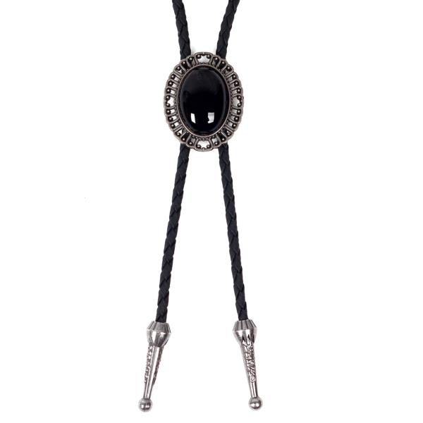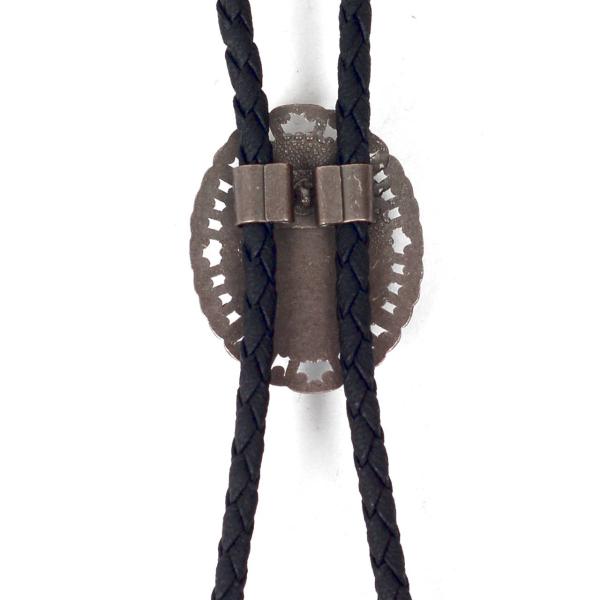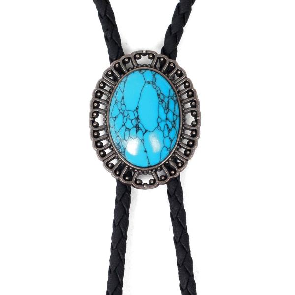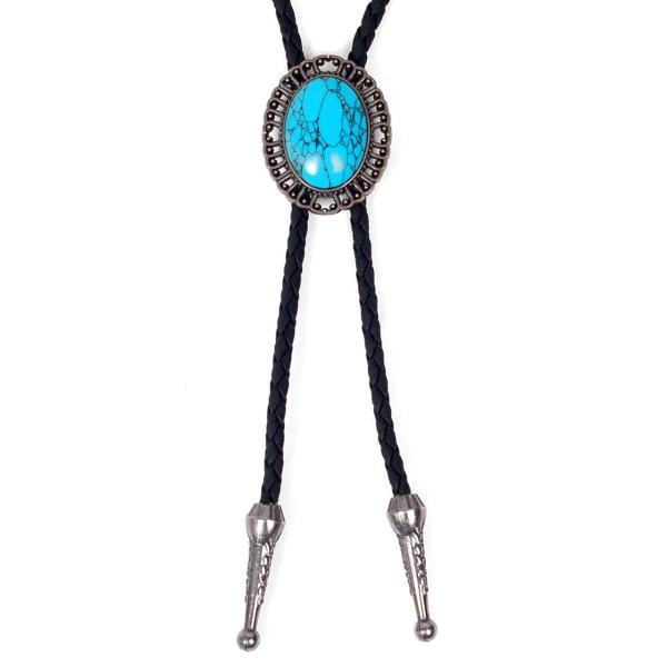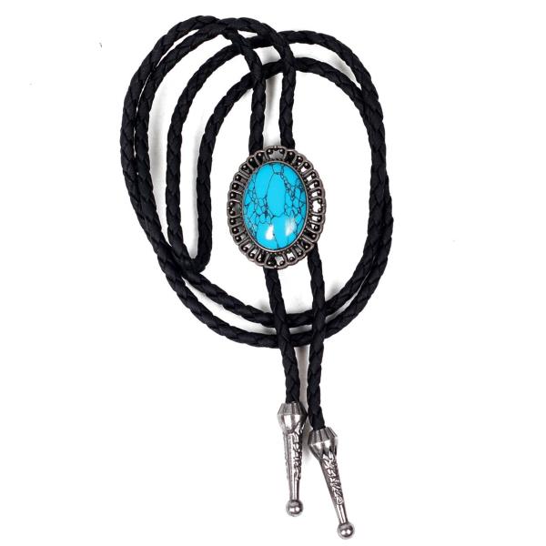 ループタイ メンズ ターコイズ ネックレス ボロタイ アンティーク調 レザーコード ブラック、クラックブルーストーン、 カジュアル フォーマル
