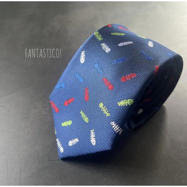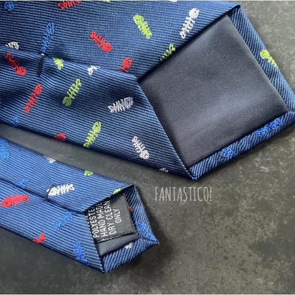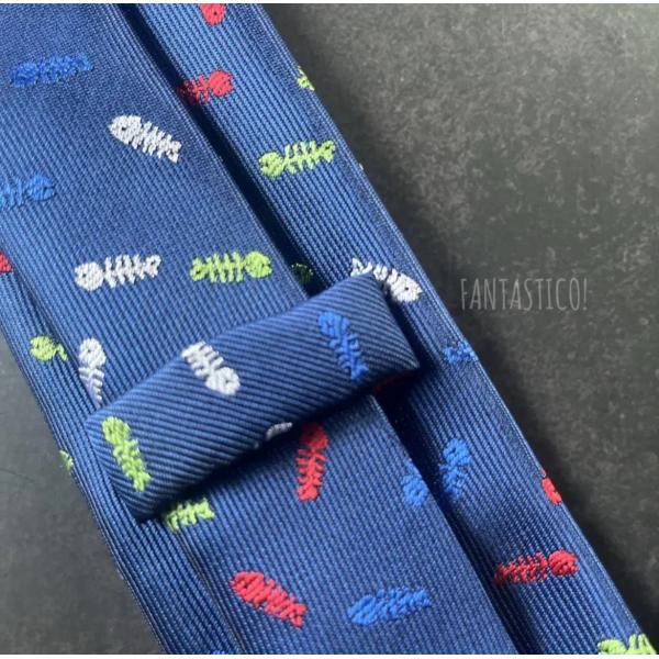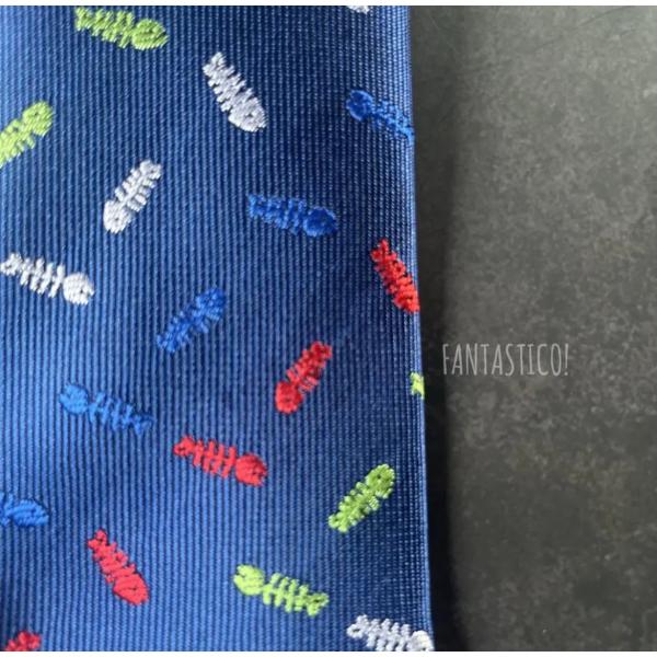 【僕の好きなことネクタイ】魚の骨柄刺繍ネクタイ♪父の日プチギフトお祝プレゼント フィッシュボーン釣りフィッシングカラフル