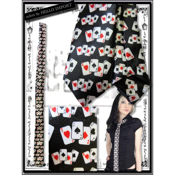 ネクタイ メンズ レディース パンクタイ ネクタイ トランプ 柄 パンク ゴシック 黒 白 赤 クリックポスト送料無料 /rfo325