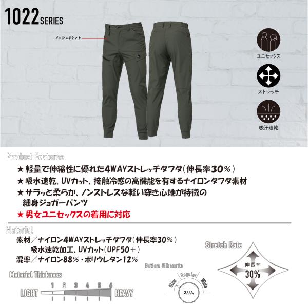 ジョガーパンツ ストレッチ 接触冷感 UVカット 吸水速乾 バートル 1022 カーゴパンツ 軽量 メンズ レディース