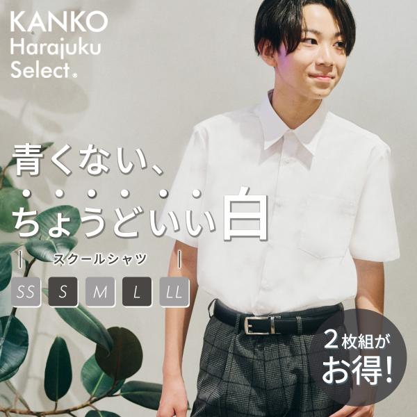 【2枚組】スクールシャツ 男子 半袖 形態安定 白 制服 シャツ カッターシャツ ワイシャツ レギュラー 高校生 中学生 学生 通学 送料無料 カンコー KHS309M