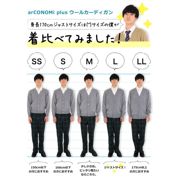 スクール カーディガン 男子 紺 制服カーディガン 無地 綿 コットン CONOMi 高校 学生 中学 通学 ネイビー グレー ホワイト 白 スクールセーター 学生服
