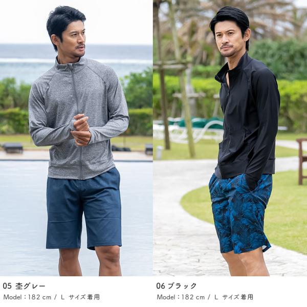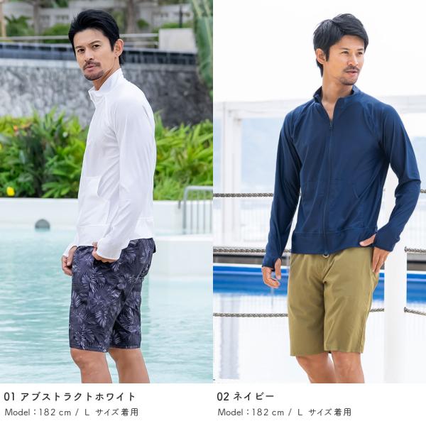 ラッシュガード メンズ スタンドカラー 立ち襟 水着用 フードなし 長袖 体型カバー UV 日焼け対策