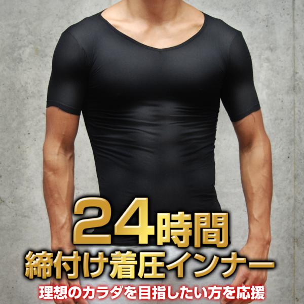 今ならポイント最大20倍 (42%OFF)加圧シャツ 加圧インナー メンズ MONOVO マッスルプレス 1枚 Vネック 半袖 着圧インナー お腹 ウエスト 引締め 24時間 筋トレ