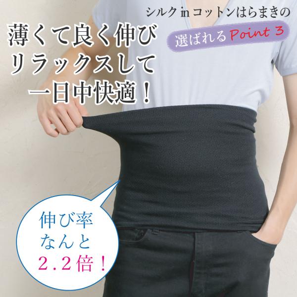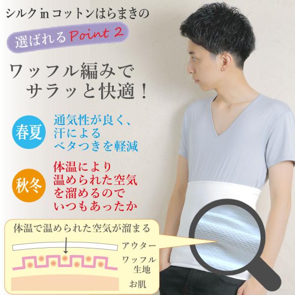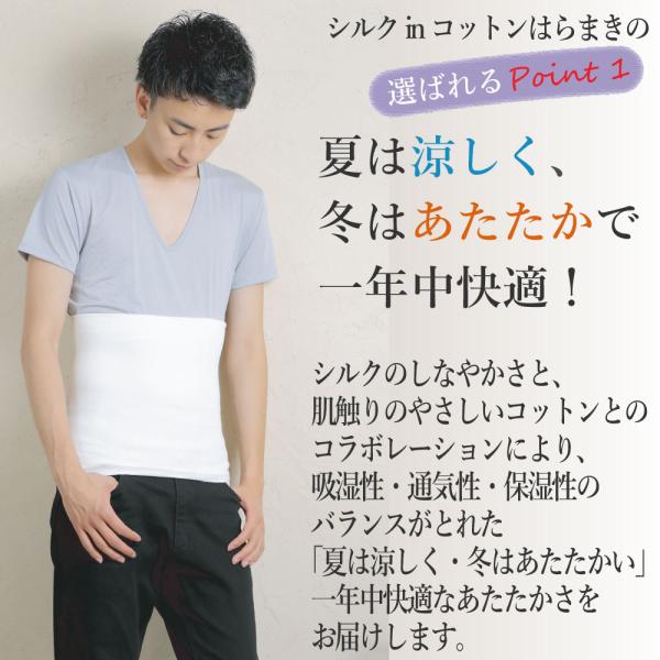 腹巻き メンズ シルク in コットン ロング はらまき 薄手 暖かい 冷え対策 春 夏用 オールシーズン 保温 2重 絹 綿 日本製