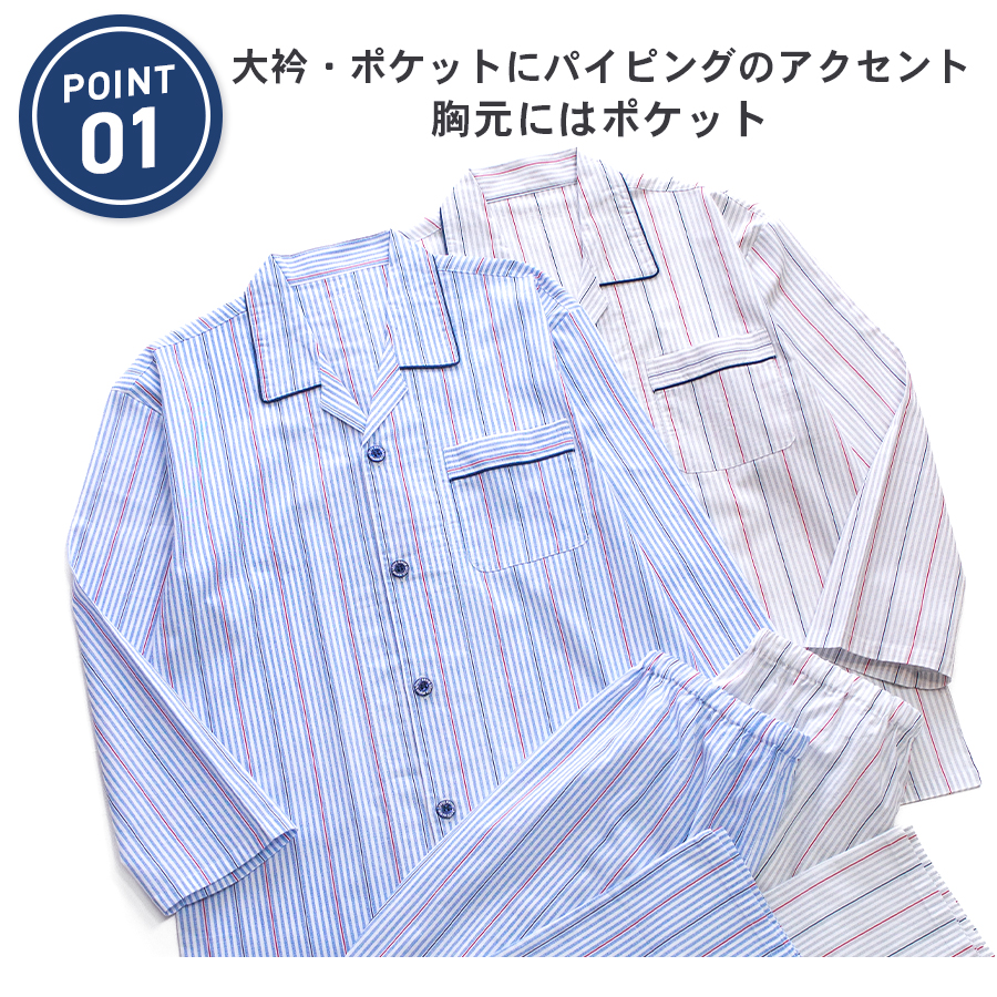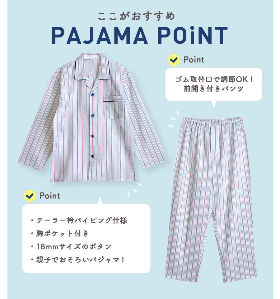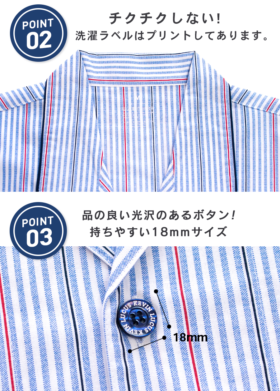 パジャマ メンズ 綿100% 長袖 春 夏 初秋 前開き ボタン ストライプ柄 薄手のシャツ おそろい プレゼント 父の日