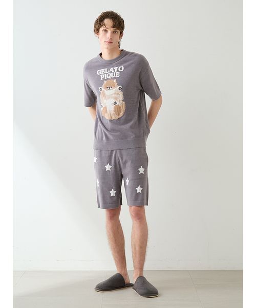 パジャマ 「ONLINE限定」「HOMME」ドッグジャガードプルオーバー&ハーフパンツセット メンズ