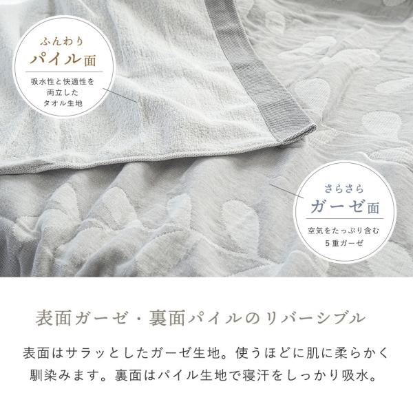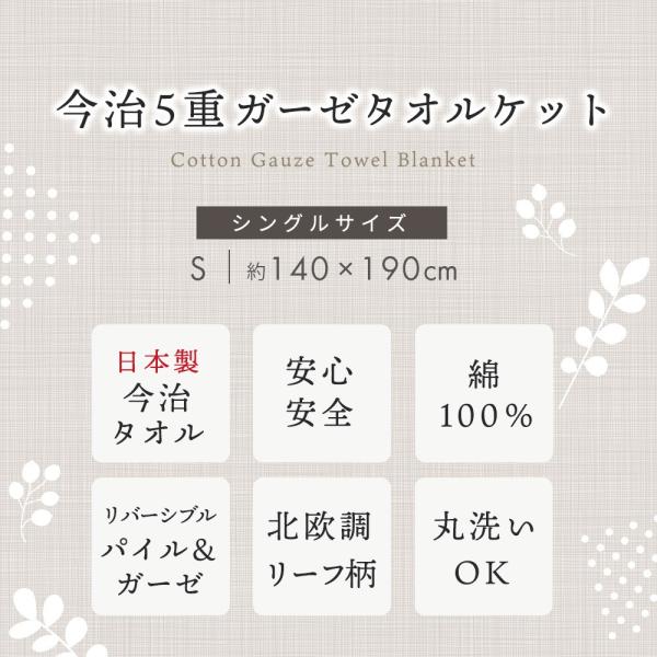 タオルケット ギフト 母の日 今治 シングル 日本製 5重ガーゼ リバーシブル 綿100% 140×190cm 春用 夏用 ノルディックリーフ 北欧