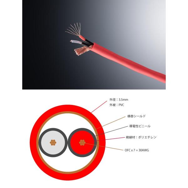 TOP WING FLOW/1m切り売り 極細径2芯シールドケーブル TOPWING