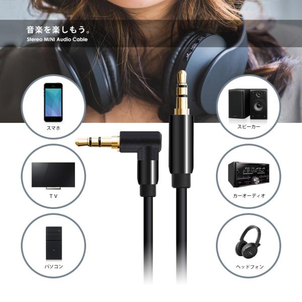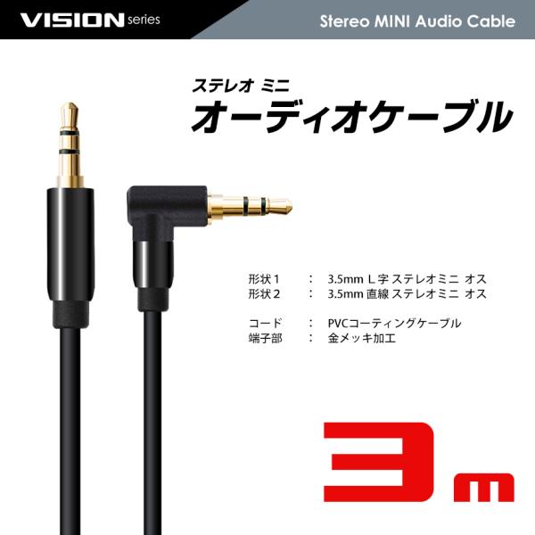 VISION オーディオケーブル 3.5mm ステレオミニプラグ AUX オス-オス 金メッキ スマホ 直線-L字 3m