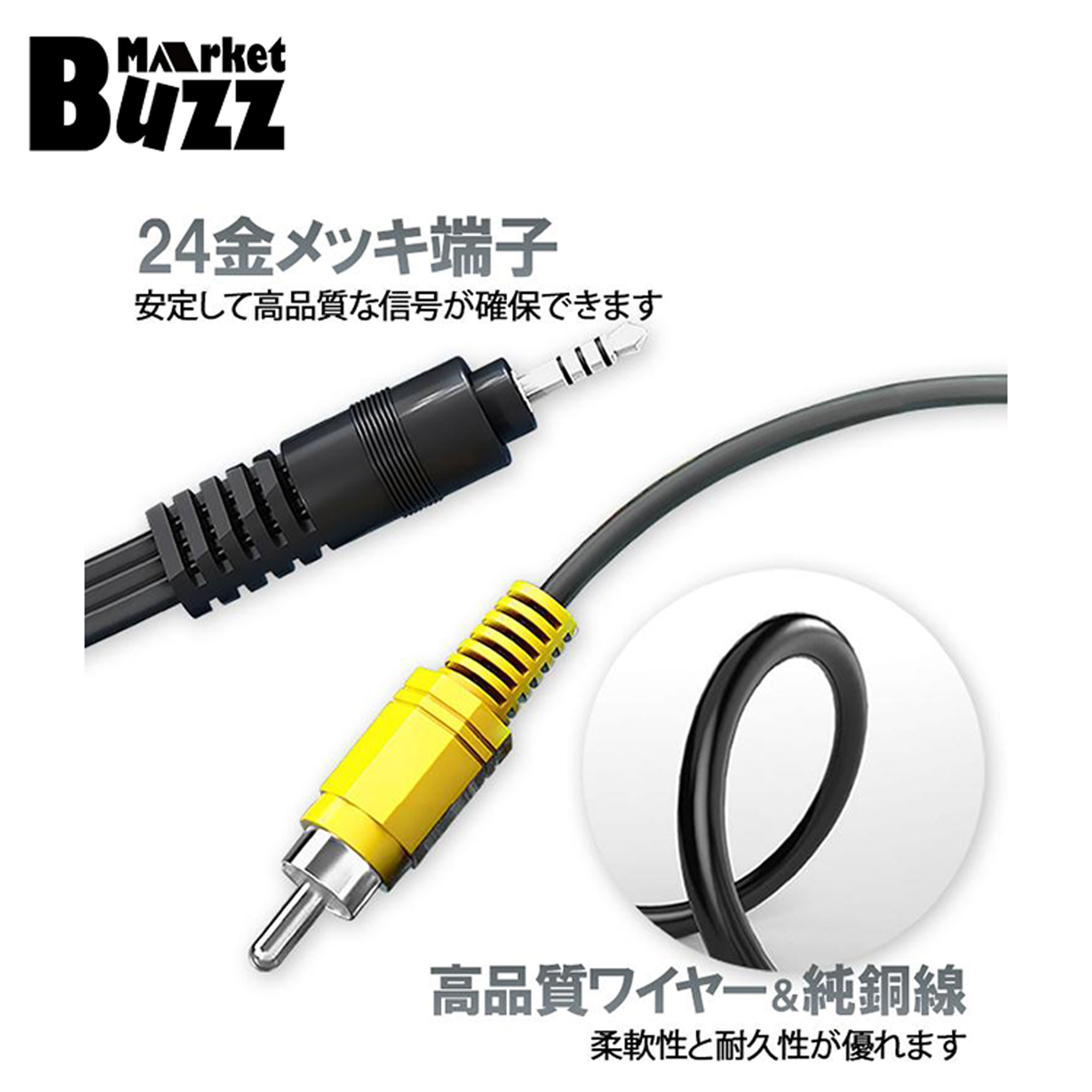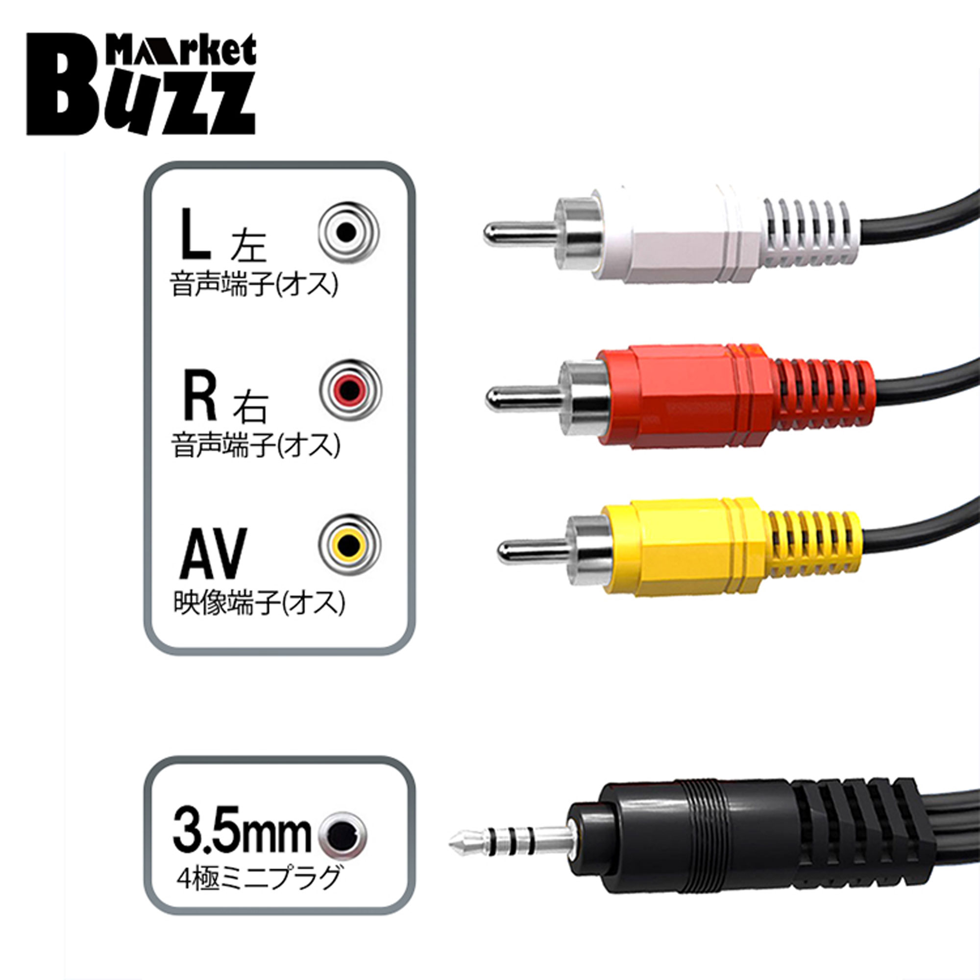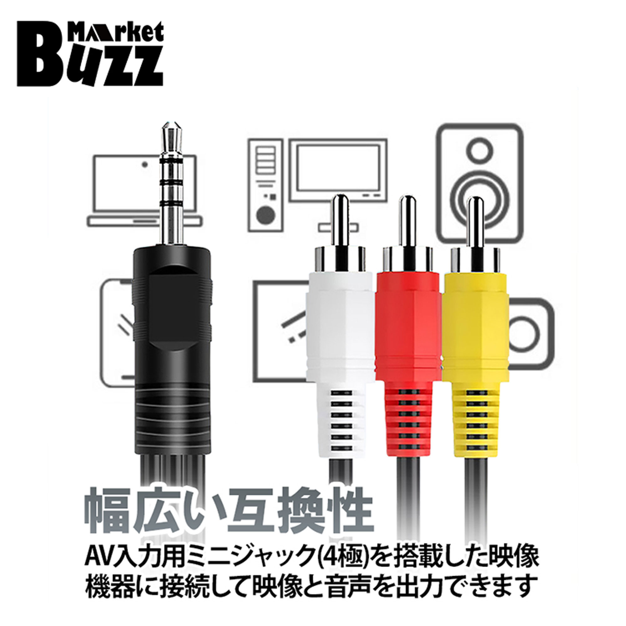 オーディオケーブル AV接続ケーブル テレビ モニター アンプ 4極ミニプラグ → RCA 変換ケーブル 1.3m 赤白黄(音声2 映像1) 3.5mm→RCAオス互換
