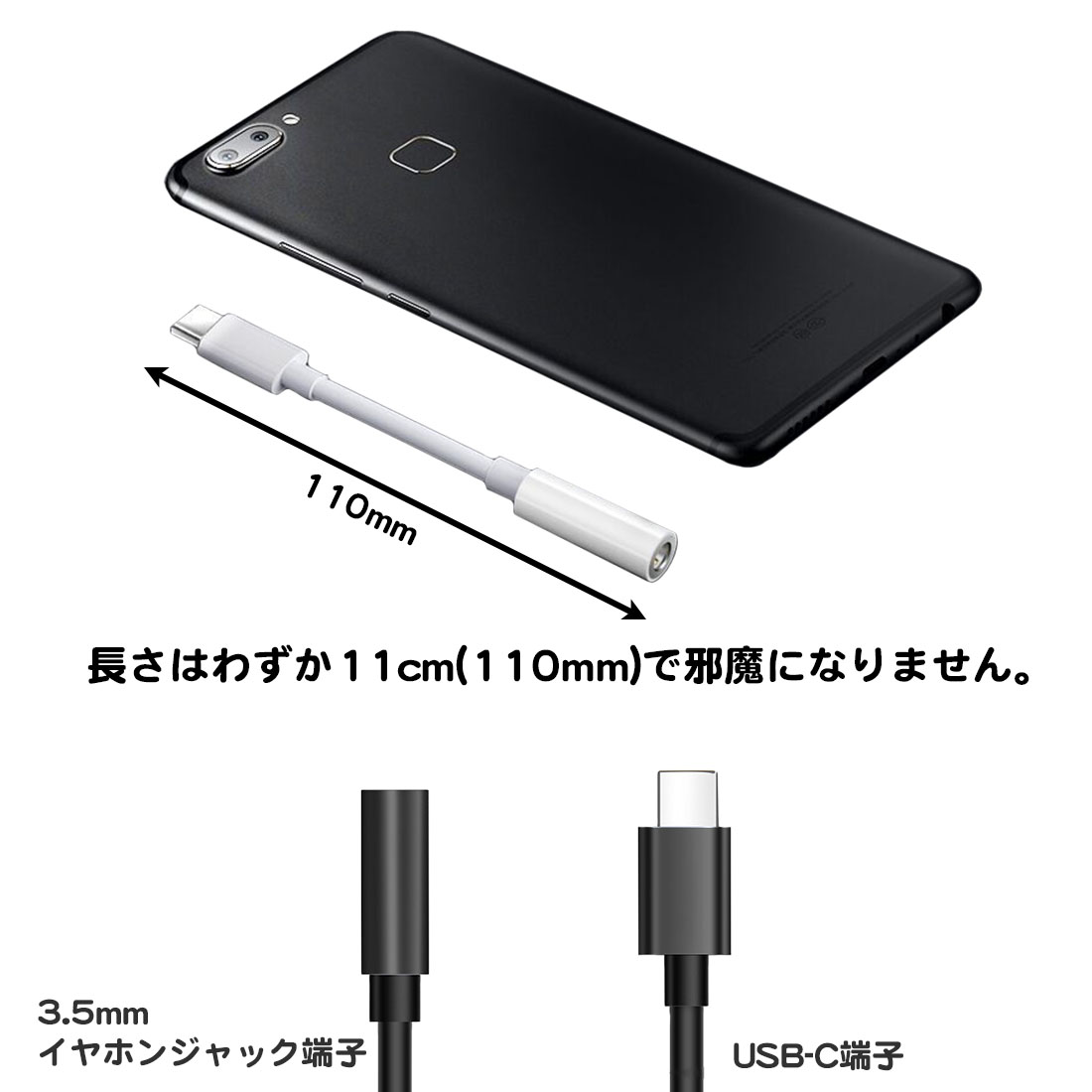 USB type-c イヤホンジャック 変換 アダプタ DAC内蔵 3.5mm 4極 11cm 短い オーディオ 黒 白 ケーブル スマホ タブレット 有線 ヘッドホン イヤホン マイク不可